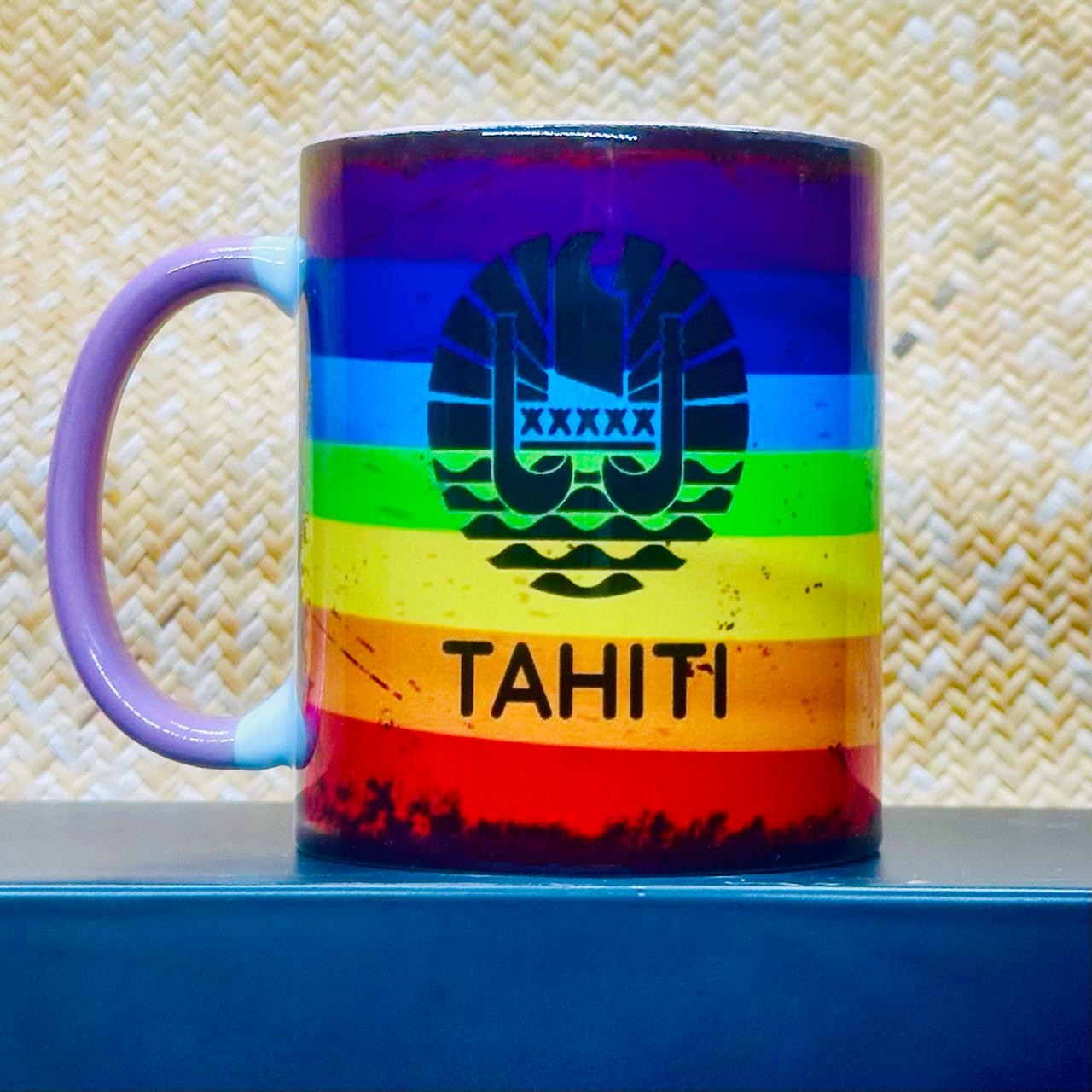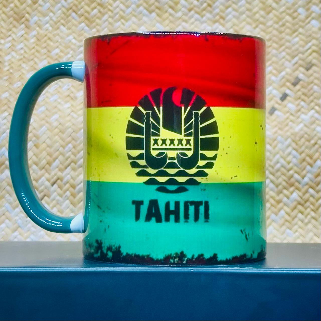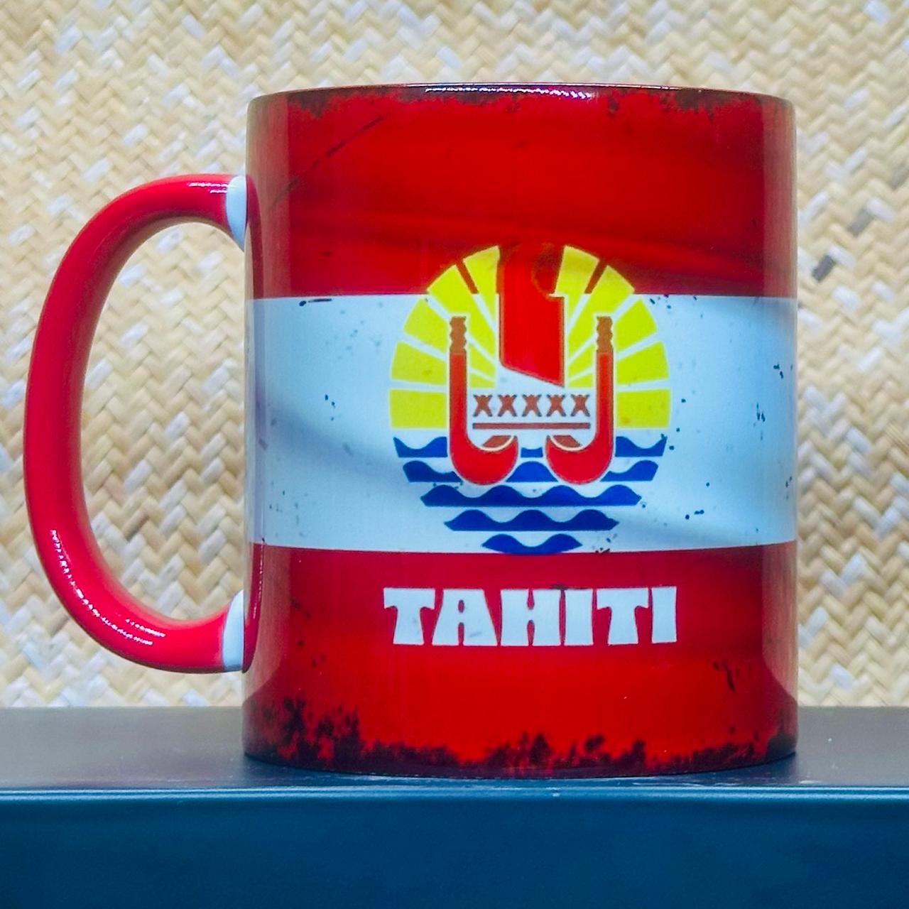 Tahiti, Teahupo'o, Firi firi, Mahi mahi, Yellow fin... Chacune de ces tasses / mugs intègrent des éléments clés de la culture Tahitienne.